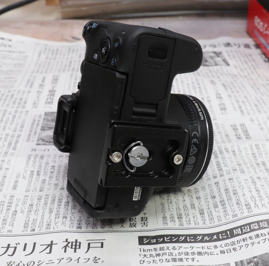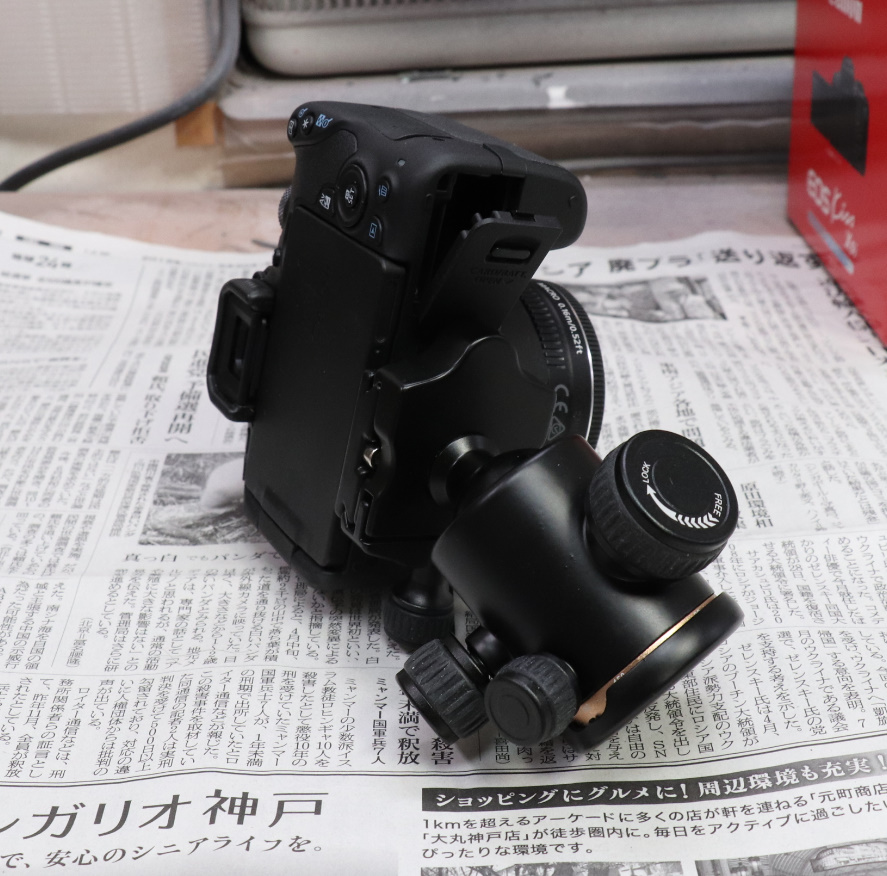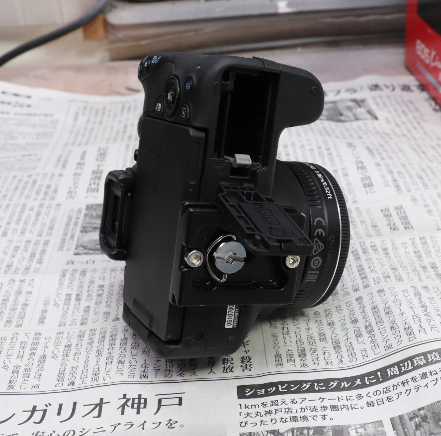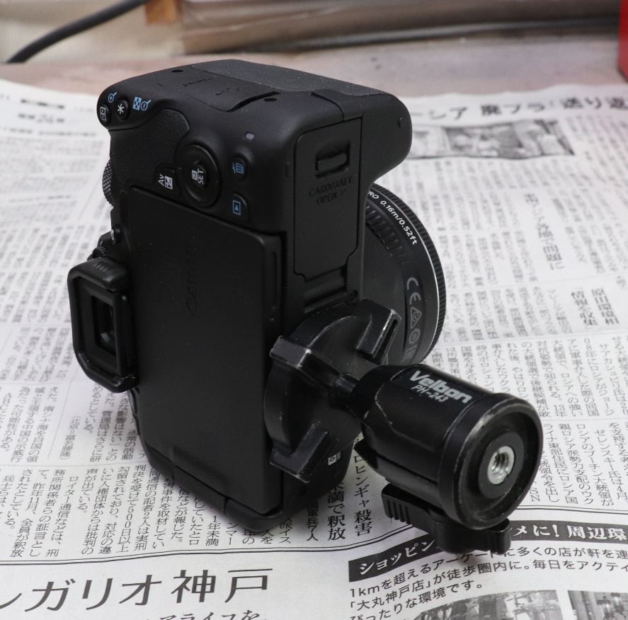 EOS Kiss X9は写真を撮影する分には良いカメラなのですが、動画撮影ではパソコンでのリモートライブビューでもSDカードの挿入が必須で、SDカードは電池と一緒の底の蓋から入れる関係で、雲台に固定して撮影していると、SDカードの取り外しや交換の度に、雲台からカメラを取り外す必要があり、ホットシュー付きの雲台とは言え、不便に感じていました。