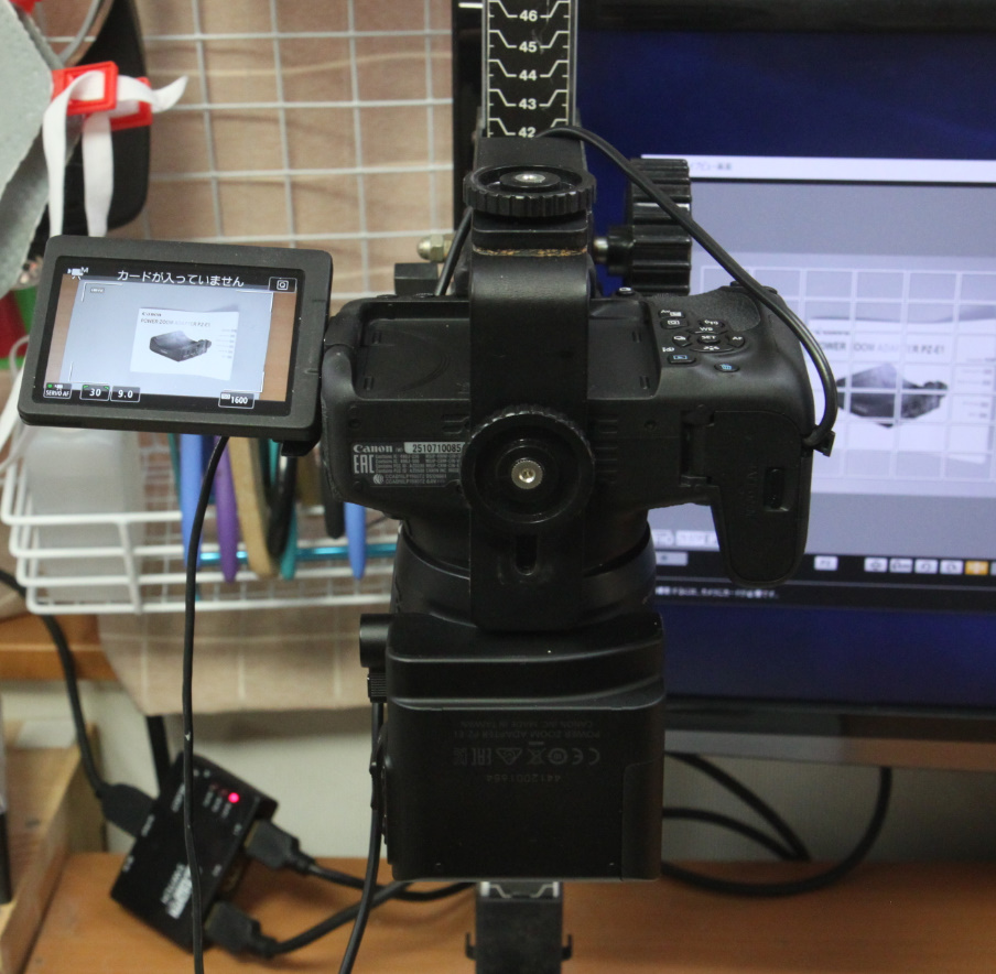 USBコネクターも左側なので、コピースタンドに固定する場合、EOS Kiss X9とはL型ミニブラケットの位置を変更する必要は有りますし、電源とUSBで左右にケーブルが出るものの、使い勝手は問題無い様でした。