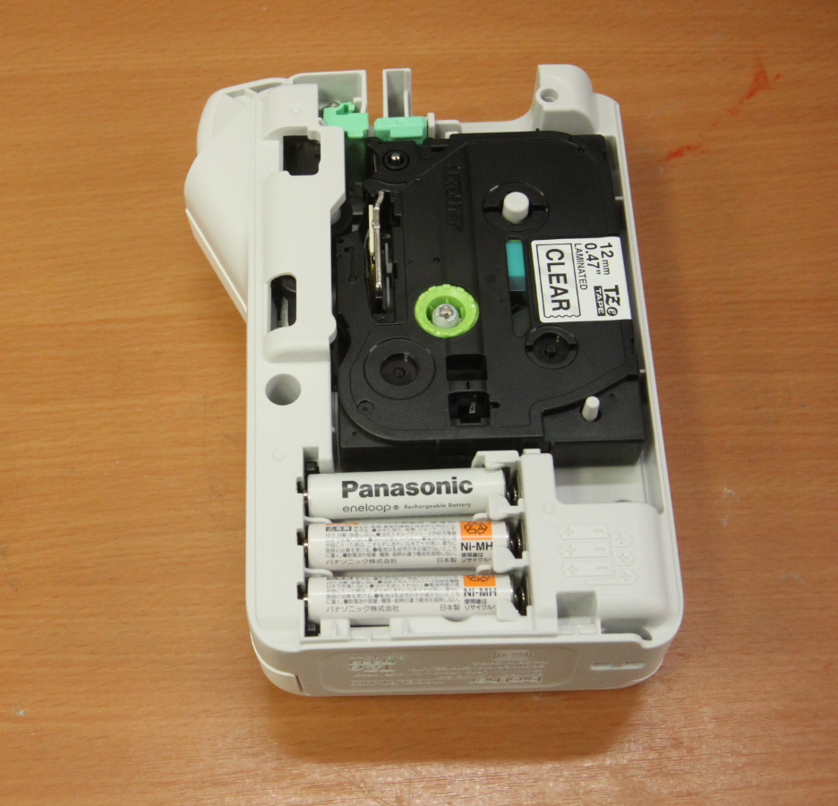 写真では一緒に買ったラミネートタイプの黒文字透明テープをセットしています。