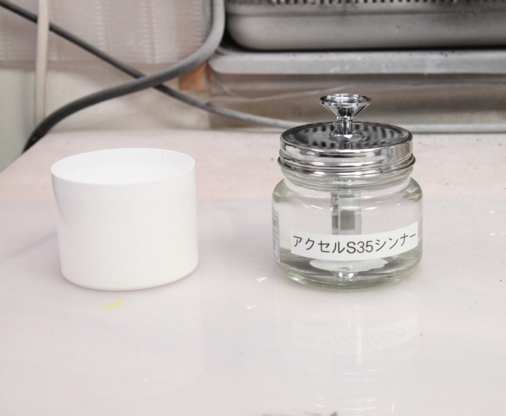 クリーンポットにラッカーシンナーを入れてを試して見ましたが、使い勝手はアズワンの物と変わらない感じでした。