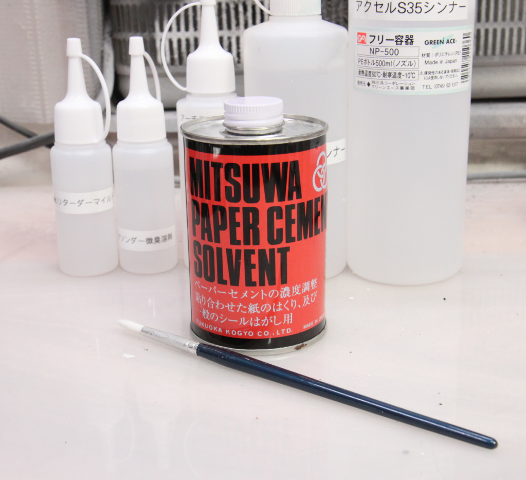 私はウィンザー&ニュートンのぺトロール(油絵用の絵の具の溶剤)の一種、アーチスト・ホワイトスピリットをタミヤやガイアノーツ、ハンブロールのエナメル塗料用の溶剤として以前から使っています。