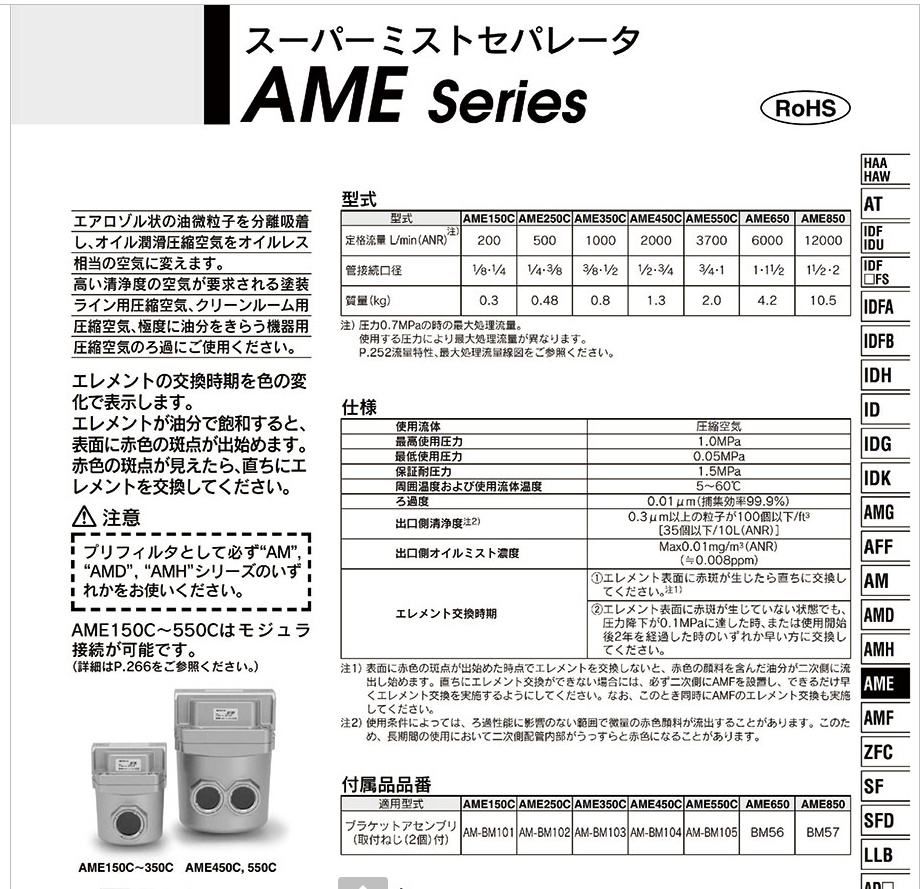 AME-250Cなら定格流量は500L/minと十分みたいなので、AME-250C-02に交換する事にします。