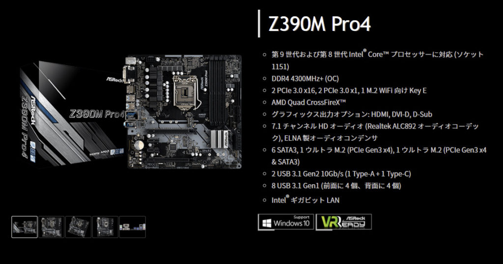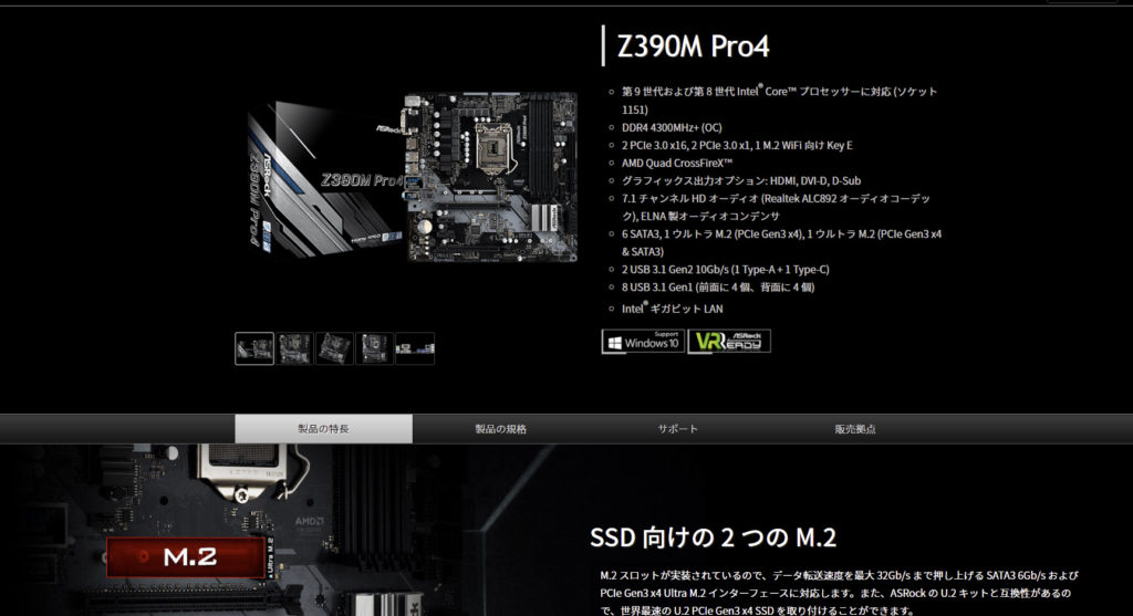 現在市販されているパソコン用の記憶装置は、PCI-e 4.0に対応したNVMe M.2が最も高速に読み書きできるのですが、私の使っている第9世代 Core iシリーズに対応するマザーボード、Asrock Z390M Pro4はPCI-e 3.0までの対応となっています。