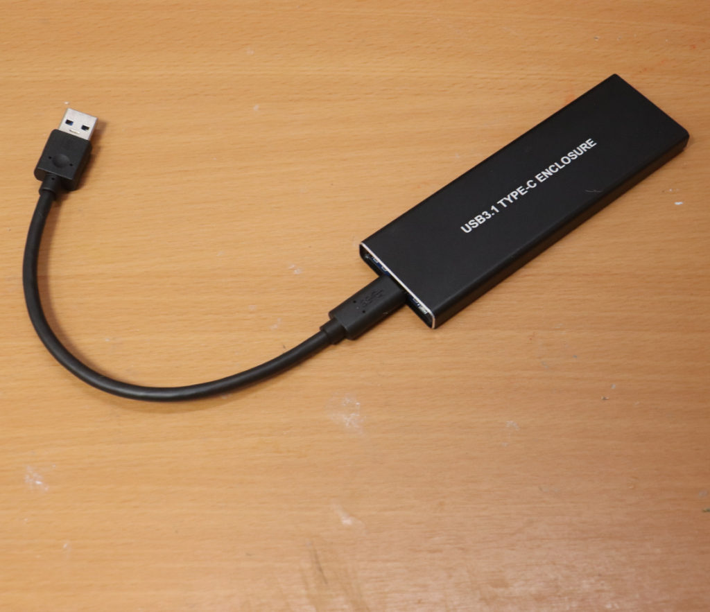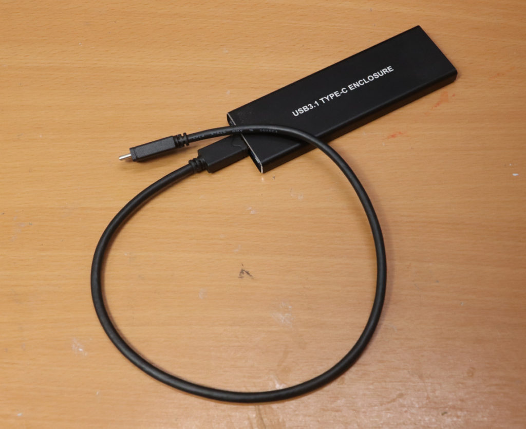 Asrock Z390M Pro4にはM.2スロットは2つあるのですが、NVMeに対応してM.2 SSD用USB接続のケースを何年か前に買っていたので、システムドライブのコピーにはこれを使う事にしました。