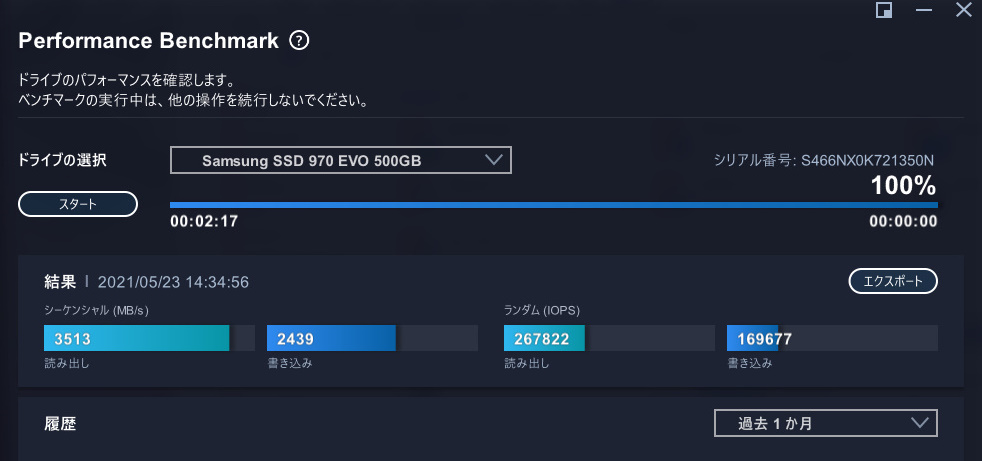 ベンチマークを行った所、サムスン SSD 980 1TBの読込が970EVOに遅れを取る結果でしたが、これは計測誤差の範囲だと思います。
