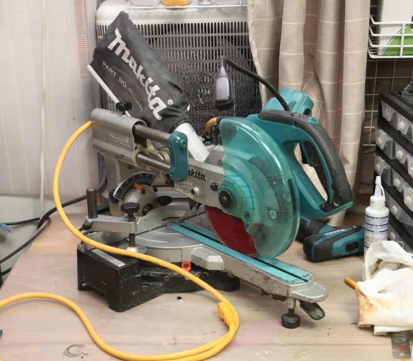 主な用途はレジンキャスト複製に使う、シリコン型をクランプする為の、板の切り出しで、そんなに使用頻度は高くないのですが、現物合わせの調整が必要なのでスライド丸鋸は以前から使っていました。安いと言う理由だけて中古品購入した10型は大きく置き場も取るので、前々から不満でしたが、こちらの製品は6型に加え、スライド機構が2段式で収納時はHiKOKIのC6RSHCに比べても場所をとらないので満足しています。