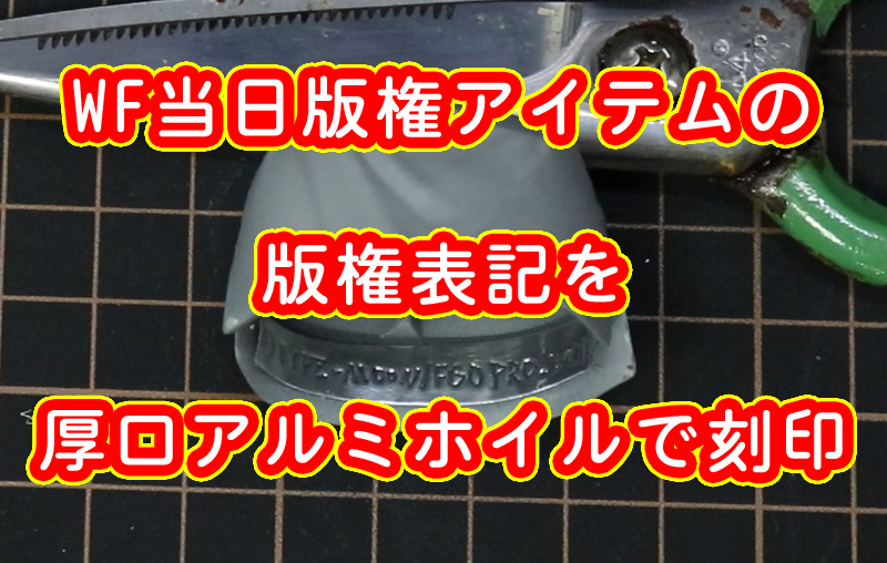 WF当日版権アイテムの版権表記を厚口アルミホイルで刻印