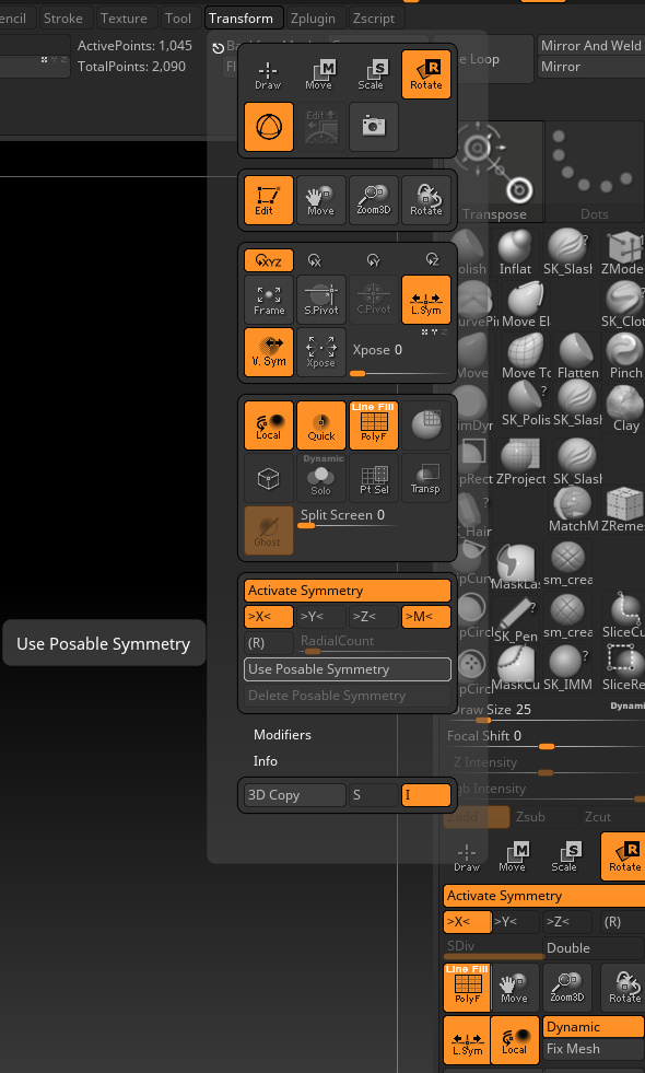 但し、以前のバージョンよりはPosable symmetryの信頼性は向上している物の、ZBrush 2019でも上手く機能しない事があるのと、Posable Symmetryでは出来ない事もあるので、私は積極的には使っていません。