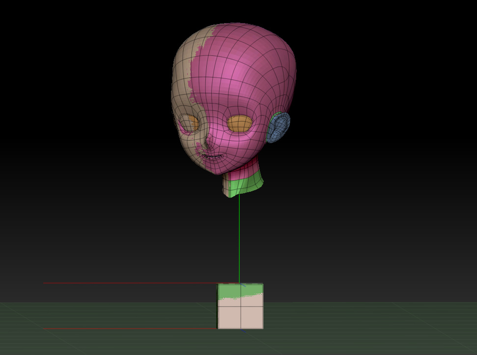 傾きを取った後に、傾きを復元する為の基準となる、立方体の任意の頂点をワールド座標の原点になる様にGizmo3Dの機能を使って移動した後、傾きを取りたいSubtoolとMargeします。