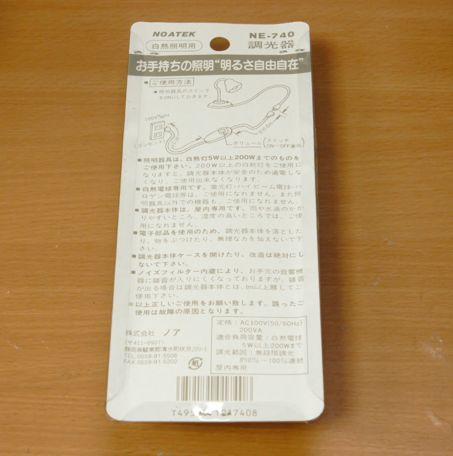 ノアテックの中間調光器 NE-740がアマゾンで1500円だったので、ペンサンダー用に買ってみました。