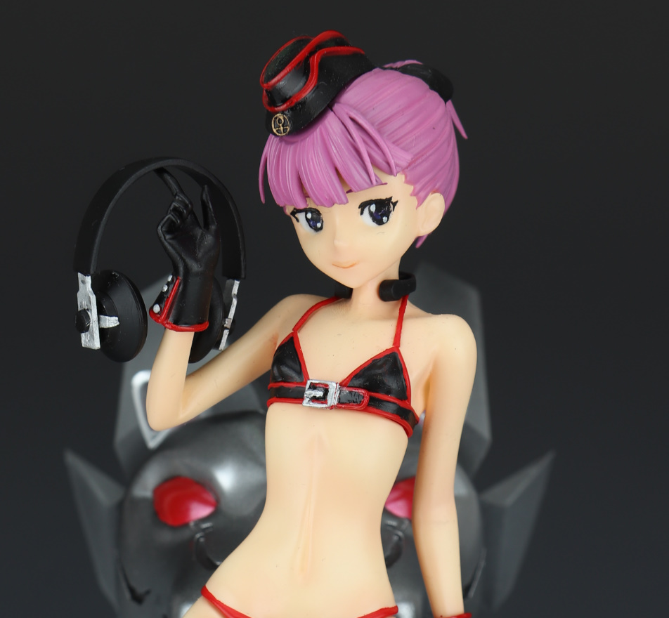 ヘッドホンと手袋、水着の金具、帽子の金色部分がハンブロールの筆塗り。