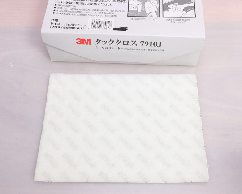 3M タツククロス 7910J は一枚一枚が大きいので、はさみなどで切って使うと良いと思います。