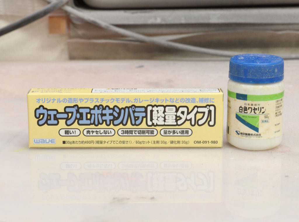 熱に強く柔軟性もある硬化後のウエーブのエポキシパテ軽量タイプは、キャスト素材と同様に非常に相性が良く、超音波カッターを常用していました。