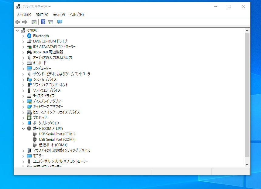 USB Serial Port(COM4)が追加されているのが確認できます。