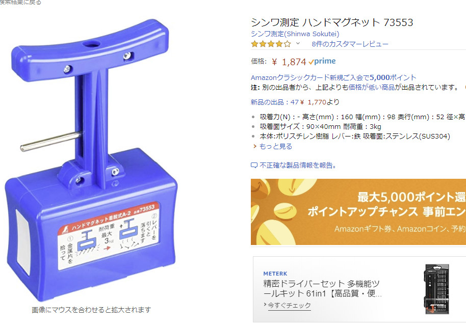 自作パソコンを組み立てたり、整備したりするときに、袋に入ったネジが全部散らばってしまい面倒な事になる事がたまにある。そんなに時に便利なのが、マグネットキャッチャー ミニ。
