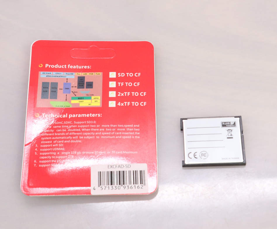 JPEGでの連写や、連写を使わないRAWデータでの撮影なら、手軽に買える、SDカードアダプターとSDカードとの組み合わせでも十分に使えると思います。