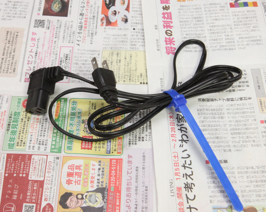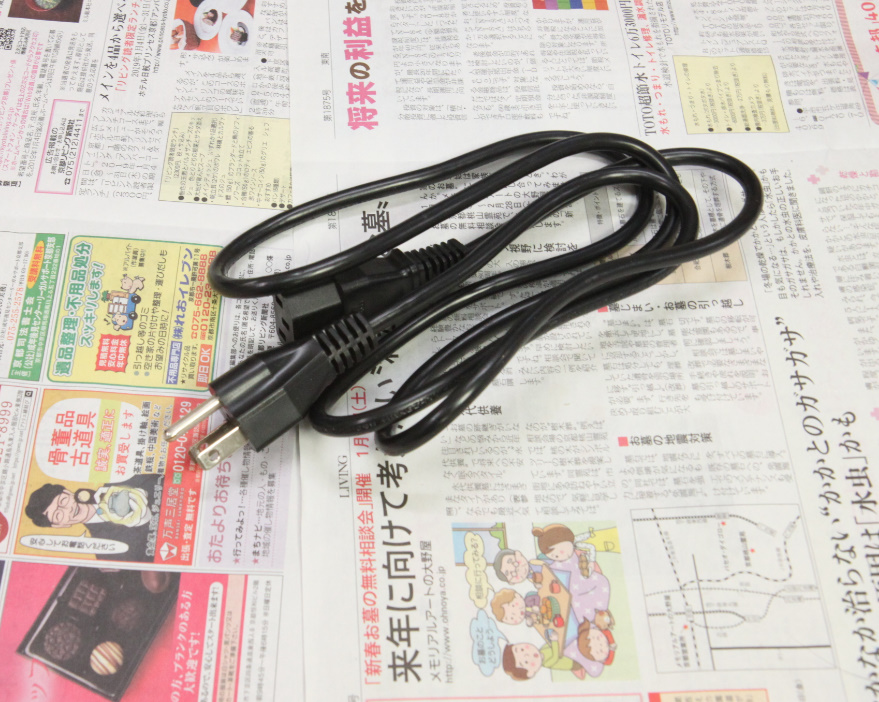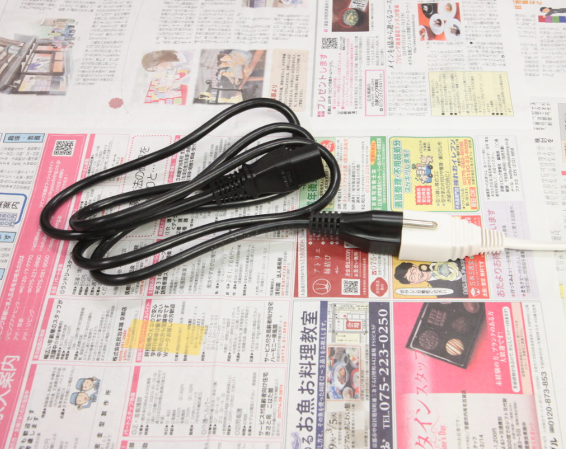 電源コードのコンセントプラグは、海外製品にありがちな、アース付き3ピンなので、変換プラグを取り付けるか、3ピンに対応したテーブルタップを使うか、コードを別の物を使う必要はあります。