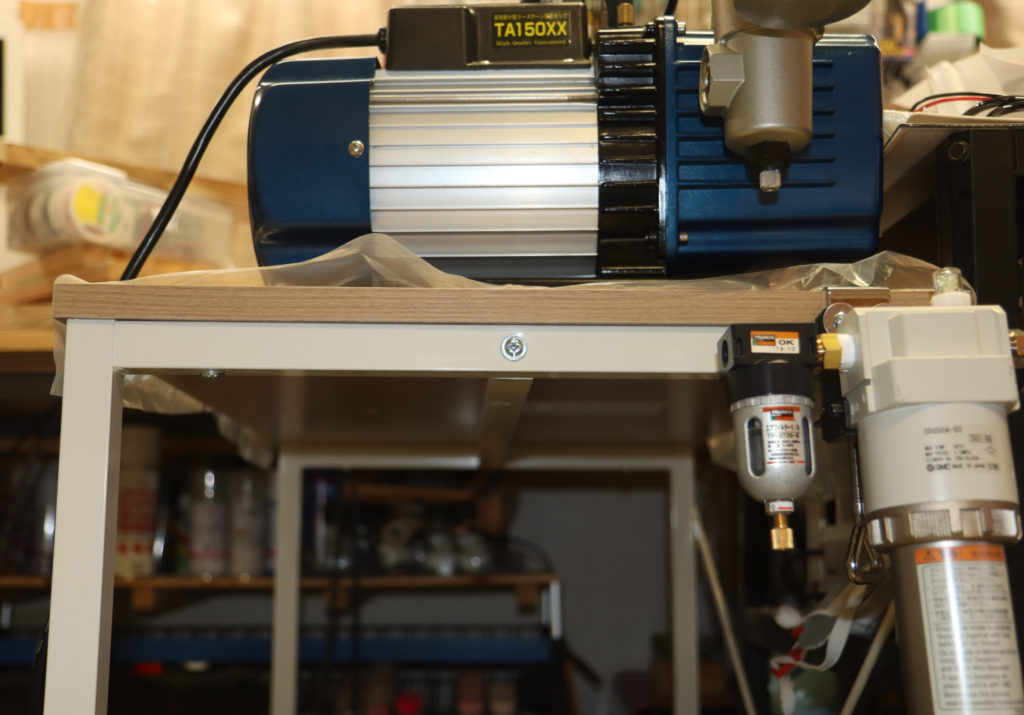 RV12の重量はおおよそ30kgなので、今までの真空脱泡機に使っていた折り畳みテーブルではとても耐えられません。