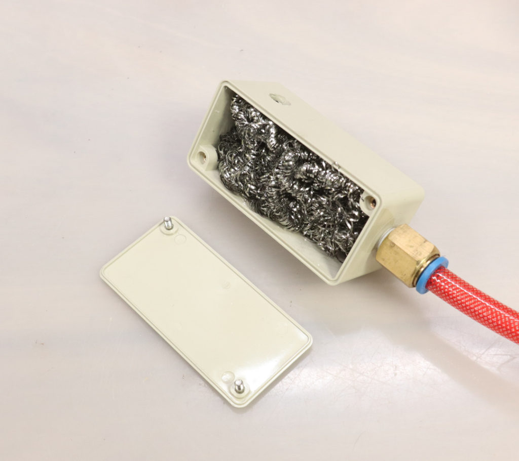 このスチールウール入りユニバーサルボックスは消音効果も高く、ホースのままだと、真空ポンプが動作する際には、そこそこの排気音がするのですが、スチールウールを入れたユニバーサルボックスを取り付けている時には、排気しているが分からない程静かになります。