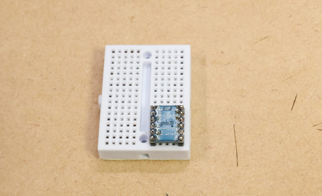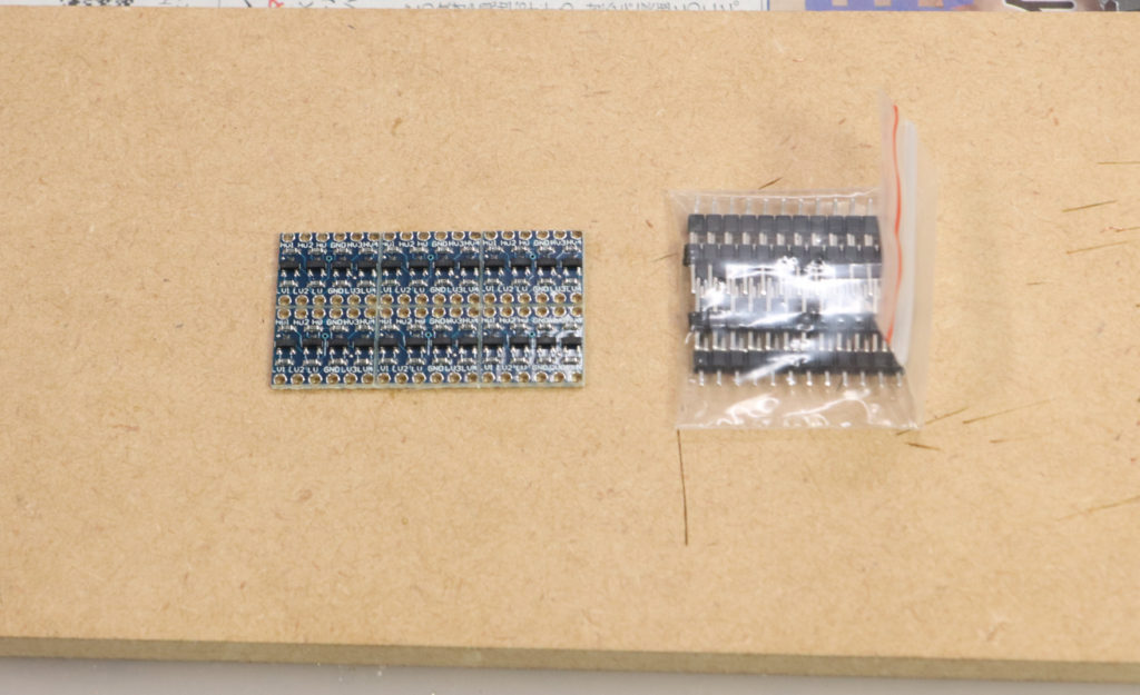 5Vの信号を3.3Vに変換するのには、最初はアマゾンで販売されていた双方向変換モジュールを使ってみたのですが、これはデジタル信号用で片方の入力電圧が閾値を境に0Vと3.3Vや0Vと5Vの電気信号を得られると言う物で、アナログ信号を変換できる物ではありませんでした。