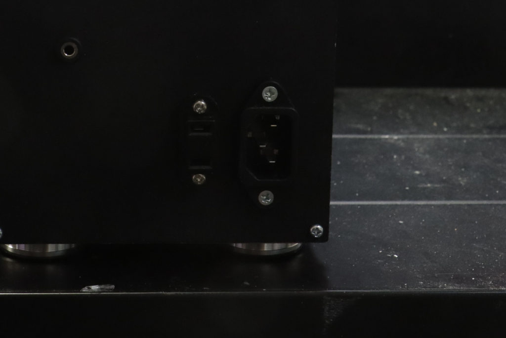 電磁弁とデジタル真空計のDC24V電源と、M5Stackとサーマルプリンターの5V電源となる2つのACアダプターを筐体内に内蔵したので、入出力端子がすっきりしました。