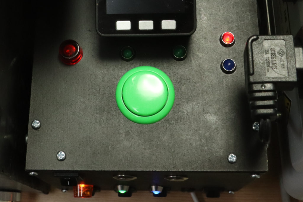 前のコントロールボックスでは押す事でON/OFFの切り替えができるオルタネイト式のスイッチを使っていましたが、スイッチが入りっぱなしで電磁弁がかなり熱を持っていた事が有ったので、そう言った事を避ける為、今回は押した時だけ通電するモーメンタリー式のスイッチにしました。