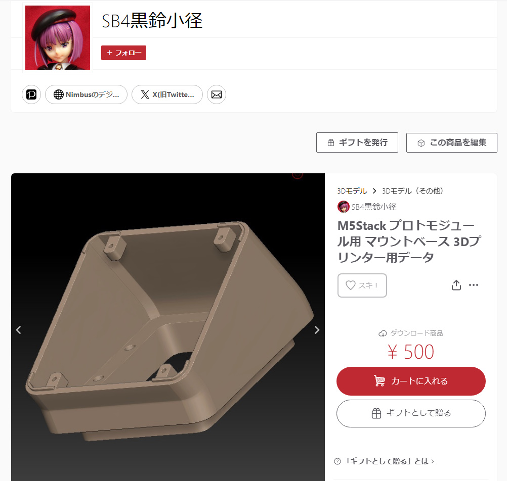 M5Stack プロトモジュール用のマウント部品の3Dプリンター用のデータはBoothで販売しています。