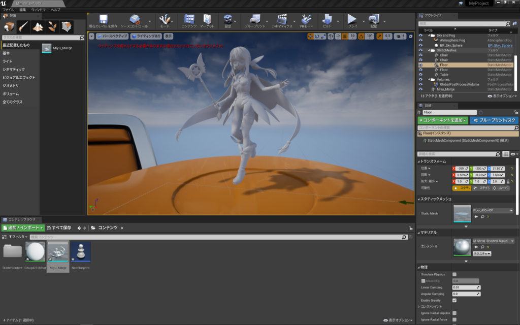 UE4のVR表示の検証には、ワンダーフェスティバル2019夏向けに作った美遊(魔法少女)のレジンキャストキット原型用データを元に、UE4表示用に加工したものです。