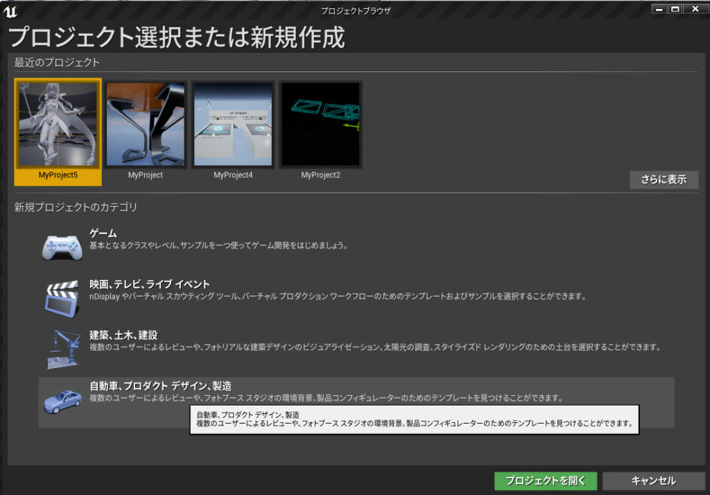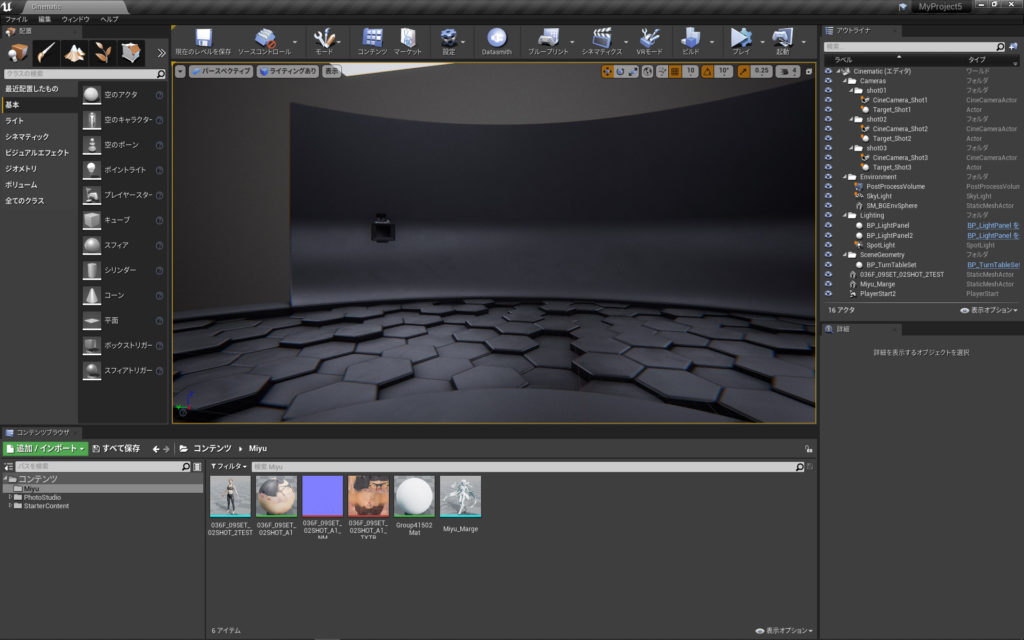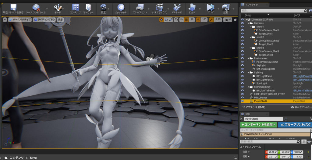 UE4ではコンセプトカーの展示会場みたいな屋内ステージのテンプレートを使っています。