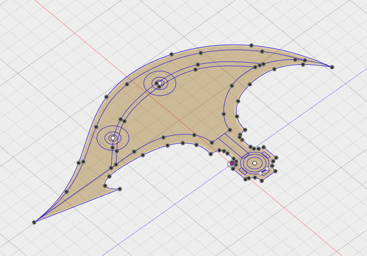 ハルバートの刃の側面のグレービングは、別メッシュにテクスチャーを描き、そこからポリペイント化、ポリペイントを用いたマスキング、マスクの清書、インフレートによるグレービングの厚みを付け、3D-Coatでブーリアンしました。