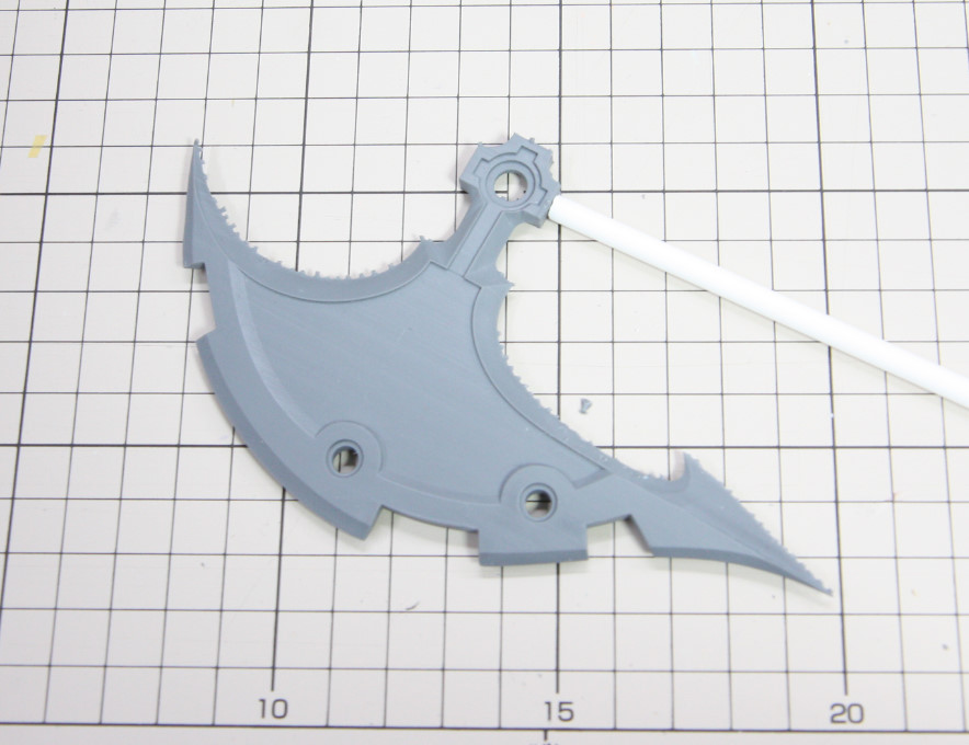 レジンキャストキットの原型は、ハルバートの刃は途中までFusion360で、それ以外は最初から、ZBrushと3D-Coatでデータを作りForm1+で出力を行い、出力品を加工しました。