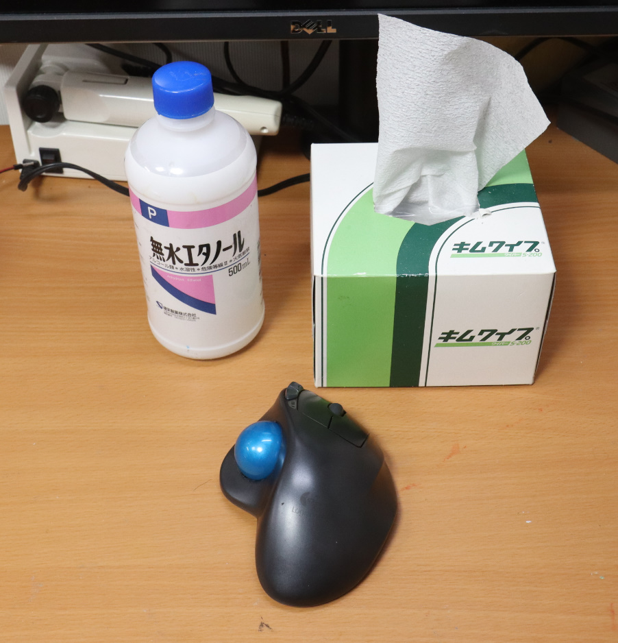 スクルールホイールのベト付きはキムワイプに無水エタノールを染み込ませて拭き取るだけ。