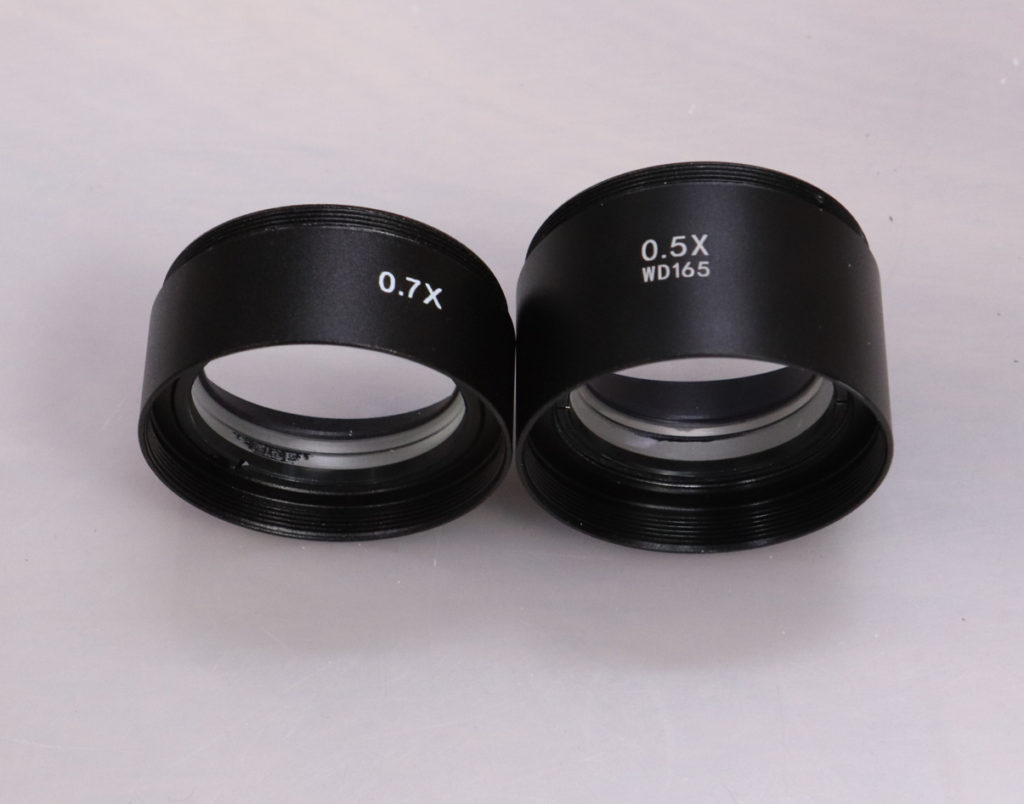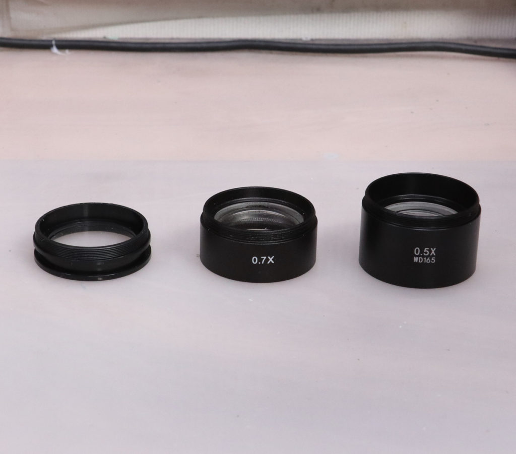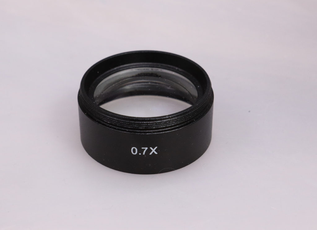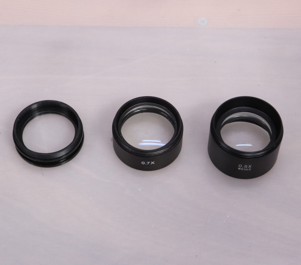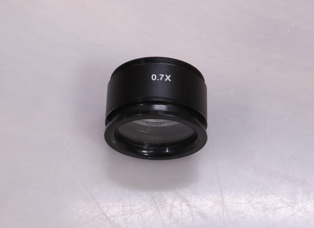 実体顕微鏡用の対物補助レンズにはいくつか種類がありますが、今回購入した0.5倍や0.7倍と言った低倍率の対物補助レンズは、観察対象の距離を大きく取る事で広い視野を確保出来ます。