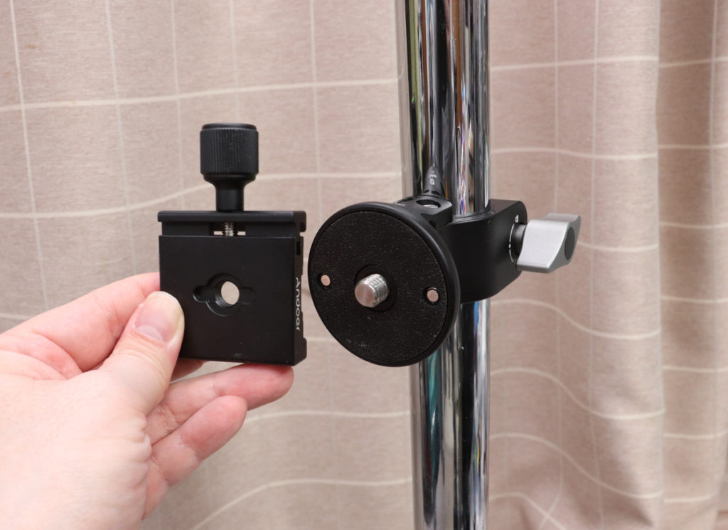 アルカスイス互換のクイックリリースのネジ穴は3/8なのでそのまま取り付けられます。