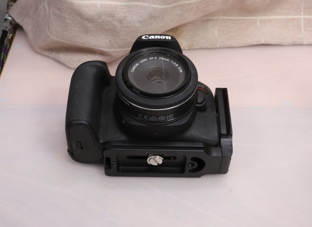 カメラにもアルカスイス互換ブラケットを取り付ければ、手早く着脱が可能です。