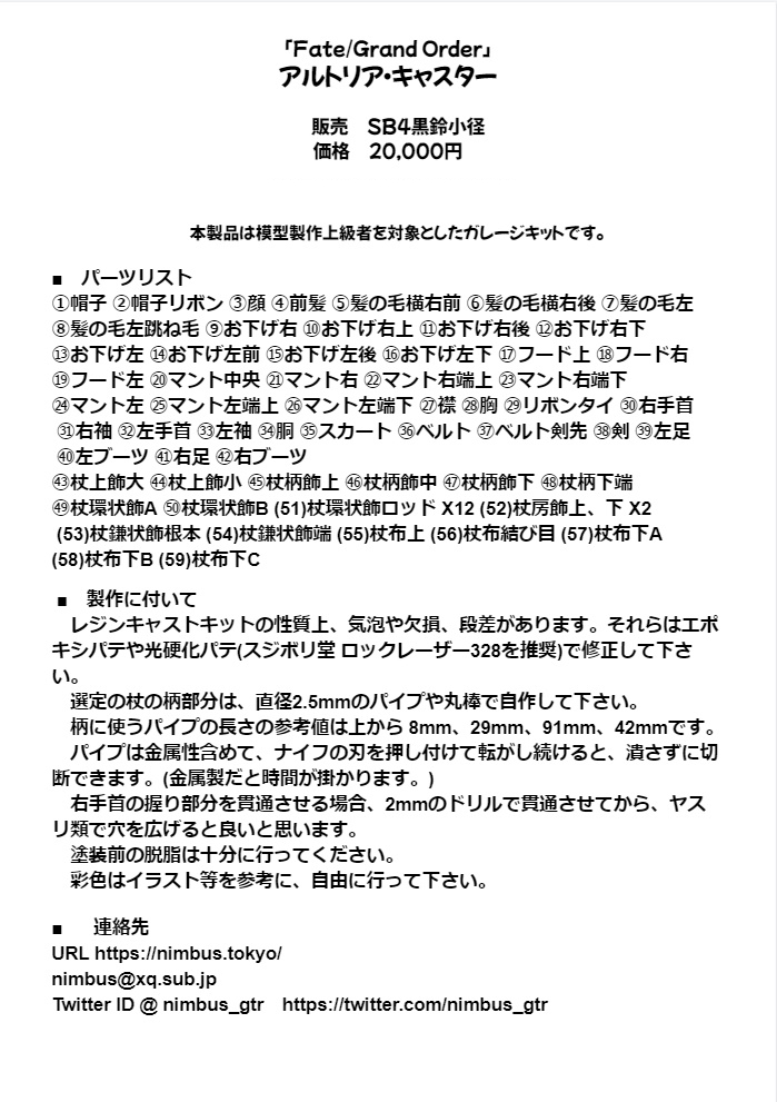 SB4黒鈴小径が販売したガレージキットに、パーツ不足やパーツの破損、キットの取り違え等、不具合がありましたら、2022年8月中を目途にメールかTwitterのDM、当ブログのご連絡、お問い合わせにご連絡下さい。