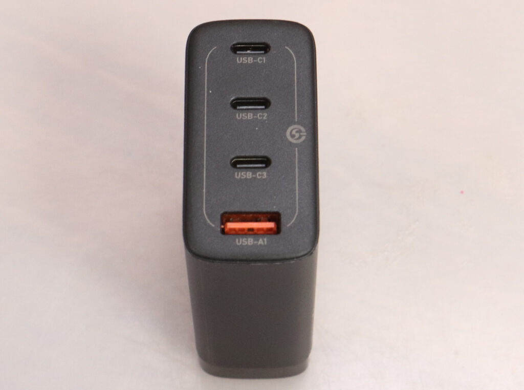 合計出力は、使用する端子の組み合わせによって上限が変わってくるものの、TYPE-A端子の隣のTYPE-C端子を使わなければ、60W、30W、22.5Wと3つの機器を高速充電する事が可能です。