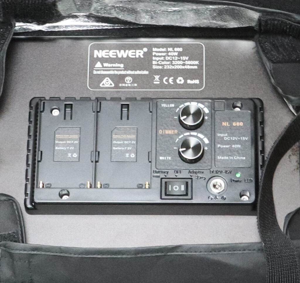 NL660は3200Kと5600Kの色温度の異なるLEDを330個づつ、合計660個を使ったLEDライトで、電源は付属するACアダプターの他に、ソニーのNP-F970リチウムイオンバッテリー(対応を謳っているNP-F550は2001年1月にソニーのサイトでの掲載が終了しているので既に生産されていないと思われます。)が使える、価格の割には性能の良いLEDライトとして評価されている製品の様です。