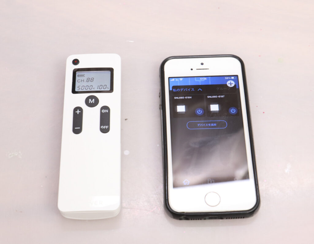 NL660アドバンスは写真左の専用リモコンで、NSL660はスマホアプリで色温度や明るさを調整できます。