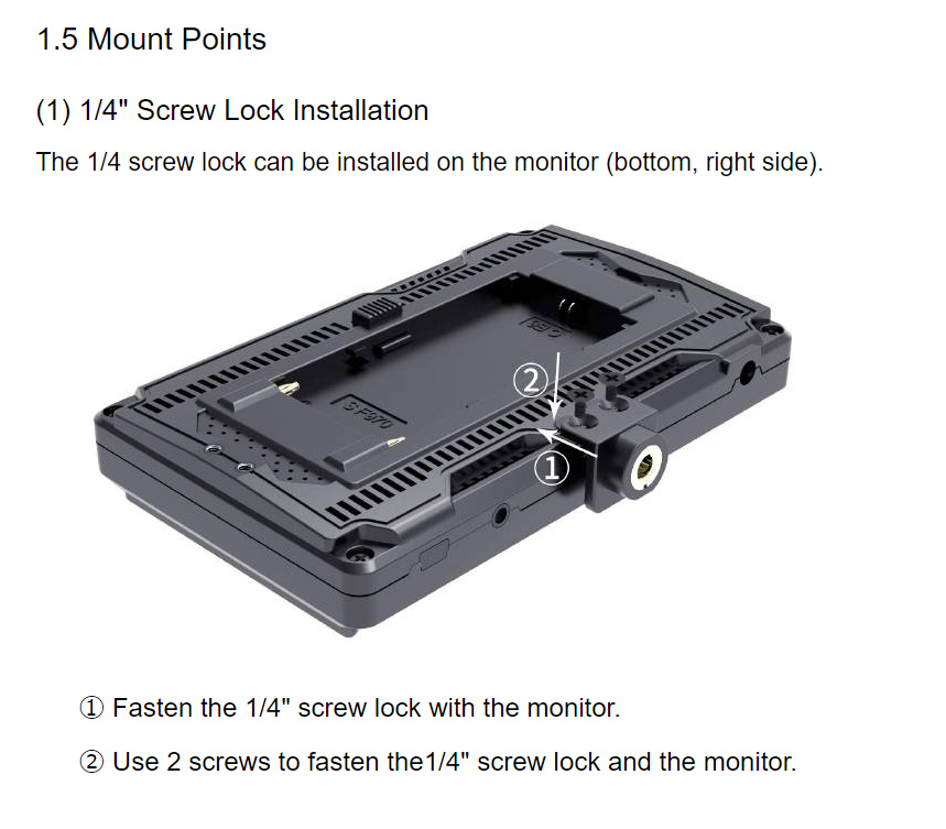 FW568のWebマニュアルによると、1/4ネジ穴の基部はネジによる脱着でモニター下側に移設する事が出来る様です。