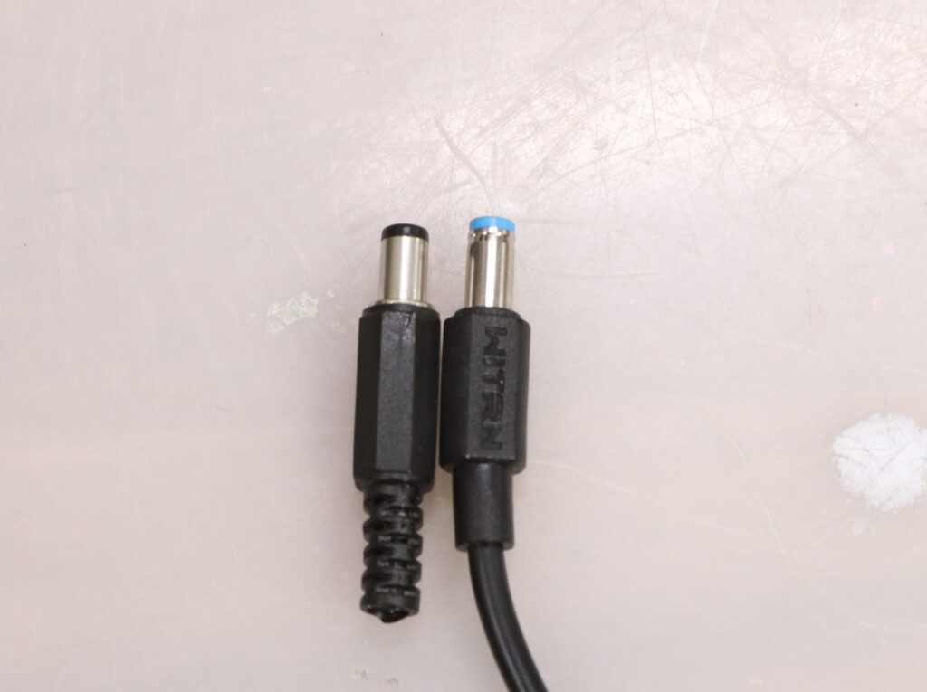左の一般的な9mm程度の長さのDCプラグでは抜けやすいのですが、右の様にほんの少し長いDCプラグだとしっかりと固定されます。