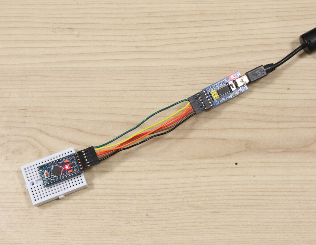 「ぶらりWeb走り書き!」内の「【Arduino】Arduino Pro Miniを使ってみる。小型で電子工作用途の組み込みに便利に使えそうですね!」にArduino Pro Miniを扱う上で必要な事は全て掲載されています。