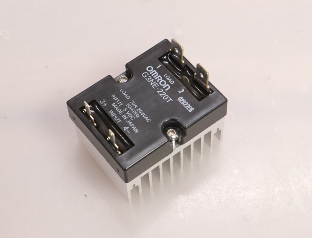 オムロンのG3NE-220Tの製品ページを見ていると、20Aまで対応するものの、5Aを超える電流量を扱う場合、オムロン純正ヒートシンクY92B-N100などを使った冷却が必要とされています。