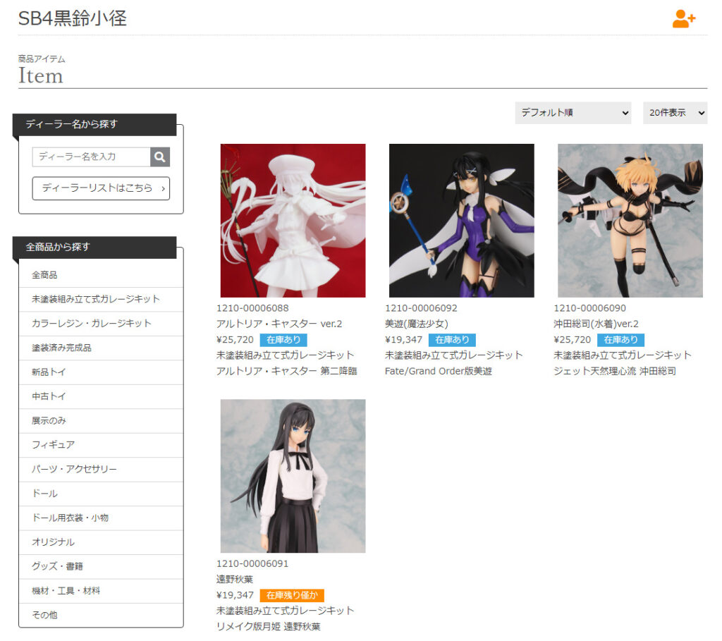 SB4黒鈴小径商品一覧ページのURLは下記の通りです。