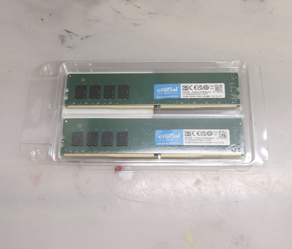 メインメモリにはCrucialのDDR4 3200 PC4-25600 32GB2枚組、合計64GBのセットを購入しました。
