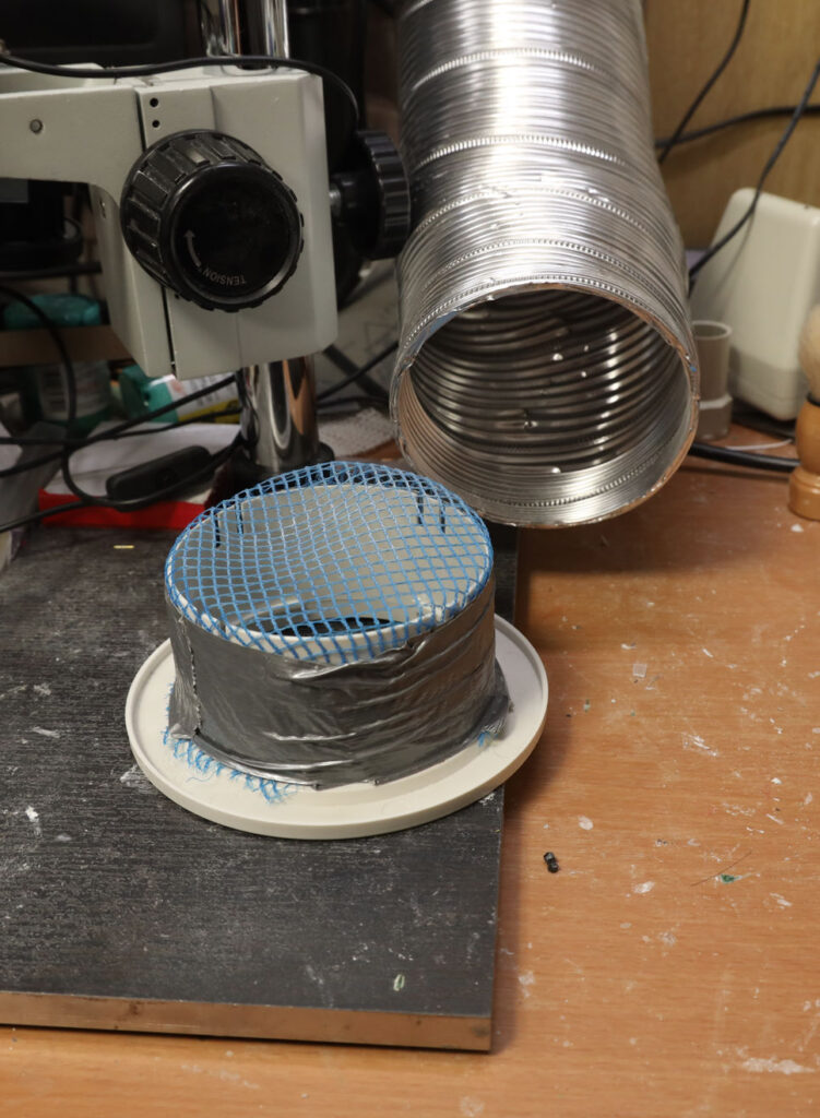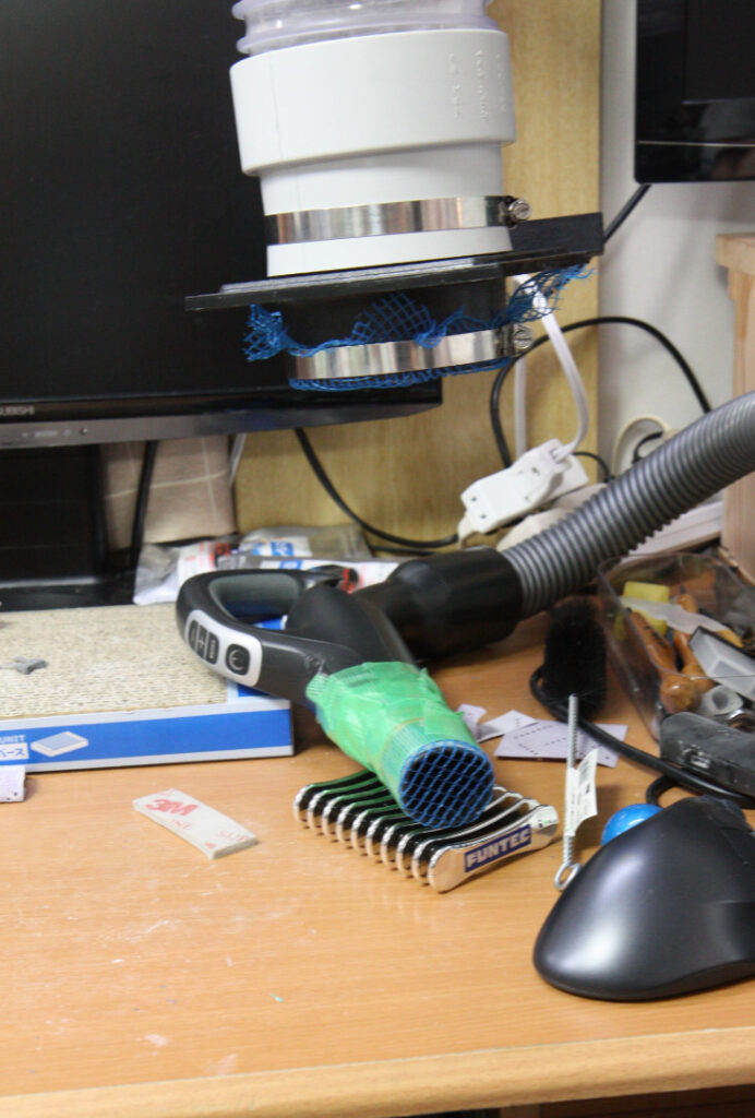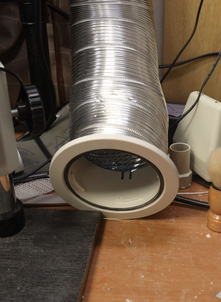 以前から使用していた、換気扇を利用した集塵機を改良しました。