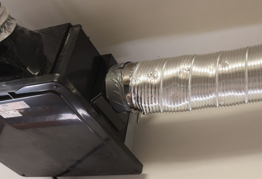 交換したアルミダクトはそれまで使っていた塩化ビニール製ダクトよりもずっと軽く、伸縮性もあるので、使い勝手は良好でした。
