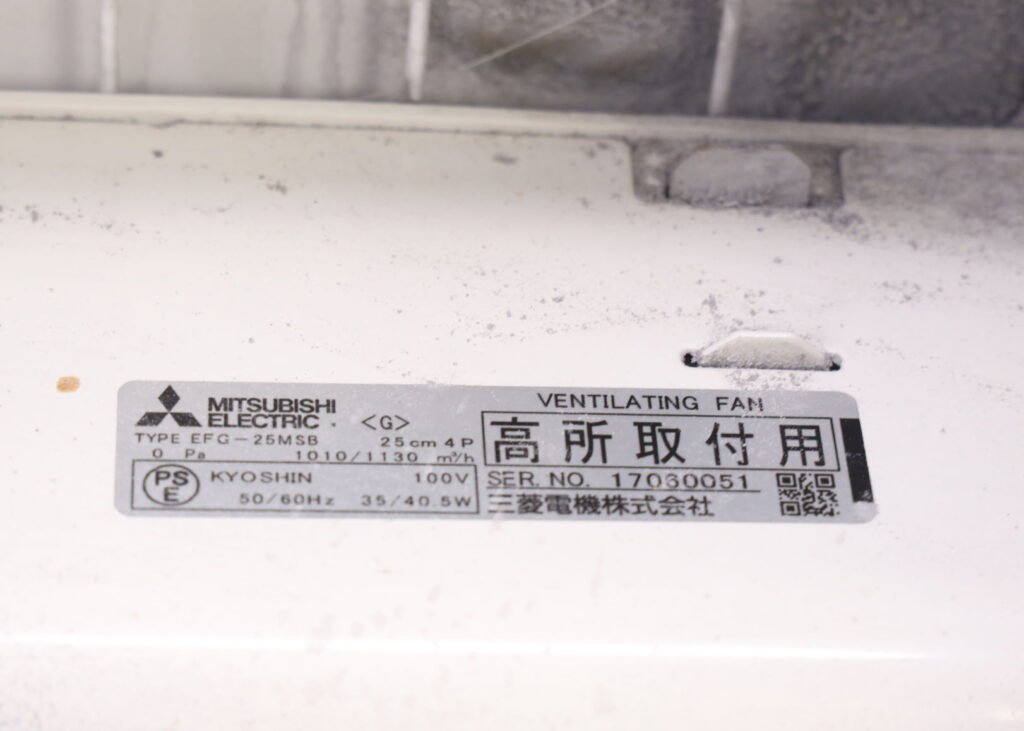 写真の換気扇は三菱のEFG-25MSB( https://amzn.to/45eDtYd )と言う製品で、電動シャッター付の25cm有圧扇です。