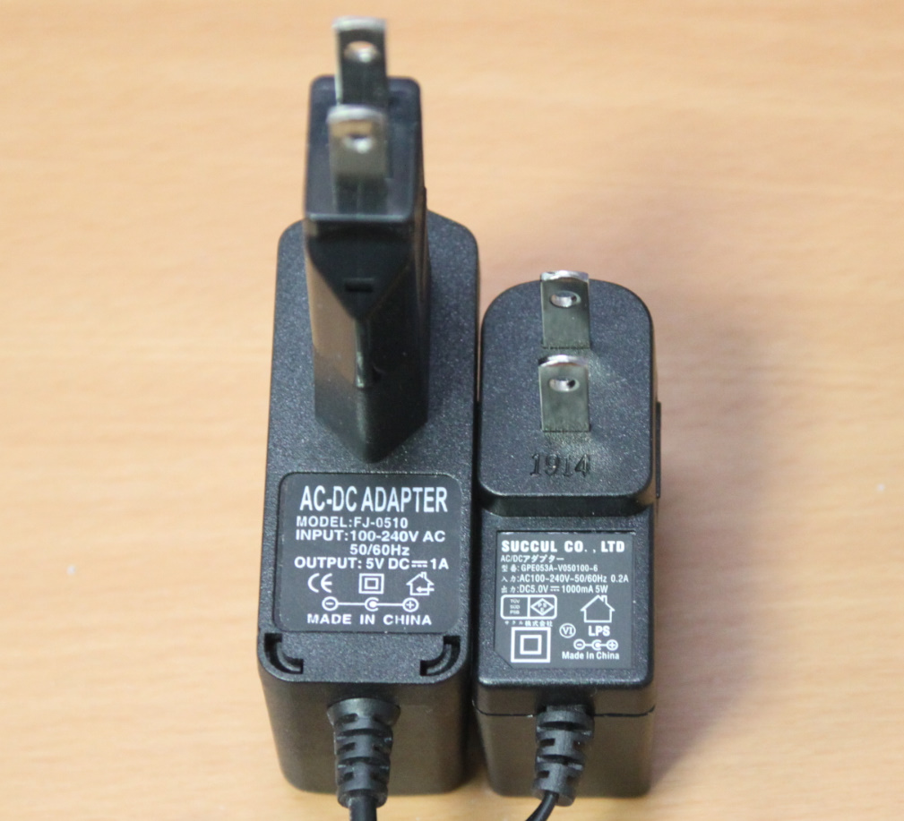 電圧が同じなら、電流(A又はmA)はより大きくても良いのですが、価格が手頃だったのもあって同じ1000mA(=1A)の製品を選びました。